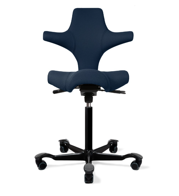 The unique saddle shaped seat gives endless options for this chair; sit in it chair backwards, sideways, kneeling, and anything else you can manage. Adjustments included in the Capisco are: seat depth, seat height, back height, tilt tension backwards, and three position tilt lock. Sitting or standing, the Capisco will always move with you.